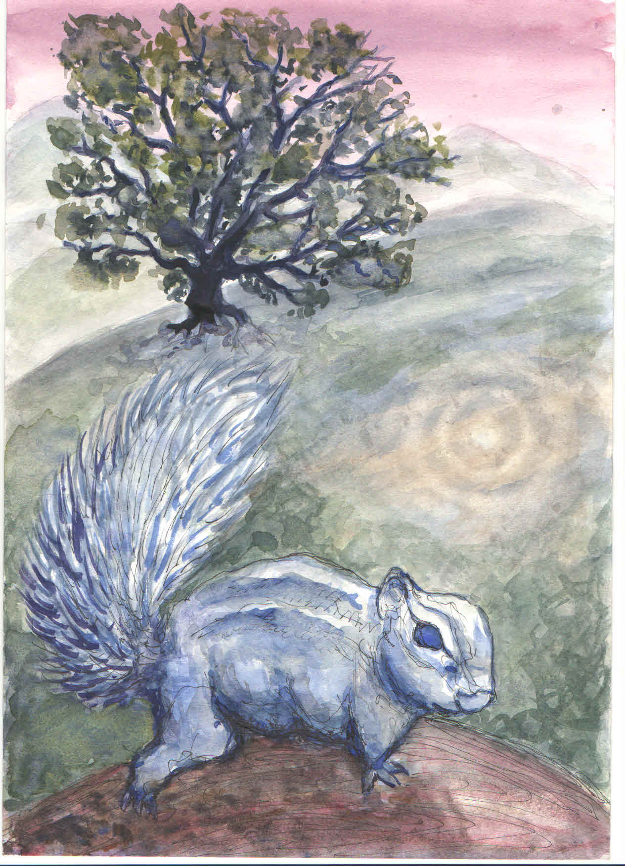 La quercia si ergeva in tutta la sua imponenza su una collina da dove si ammirava un paesaggio stupendo, incorniciato dall’orizzonte marino. Forse fu questo uno dei motivi per cui l’allegra famigliola di scoiattoli la scelse per costruirvi il proprio rifugio e beneficiare di quella rara meraviglia abbracciando sia il mare che la montagna, con un unico semplice sguardo.